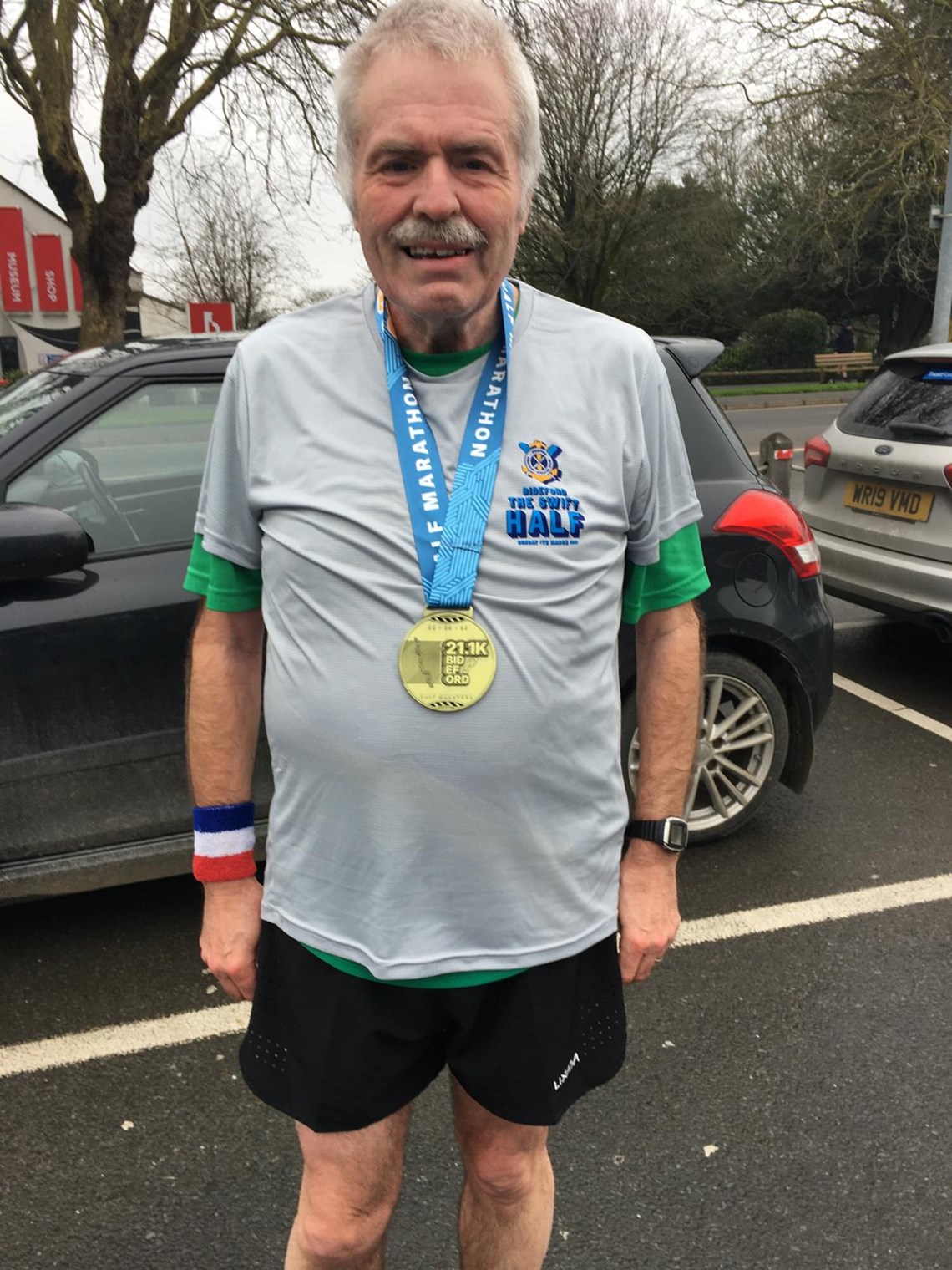Despite the gloomy fog lingering throughout the morning—helping to sweep runners home—conditions were actually near-perfect: cool, overcast, dry, and mercifully wind‑free, making for ideal PB‑hunting weather. The usual challenge at Bideford is resisting that all‑too‑tempting fast start. Kevin admitted he may have fallen into that trap, but he dug deep, held on well, and was delighted with his result—particularly impressive given he’s tackling five half marathons in March, with Weymouth up next!
