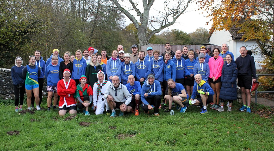 Teignbridge Trotters staged the annual John Scott Trophy handicap undulating 4 mile race. A high turnout of 41 were aiming to win the coveted magnificent trophy donated by John a former stalwart. The handicap system aims to ensure a close finish by all the runners and this year was no exception for most. With nervous anticipation the queue formed and one by one runners headed off up hill in the direction of Gappah. There was some wonderful fancydress and mix of club vests and race wear on show. Friendly marshalls along the way encouraged the participants through winding lanes before summiting at the turning point guarded by Chairman Roger. The 2nd half was easier down hill with club speedstar Alex Sparks chasing everyone down on the way home.