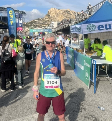 Derek Skinner took part in his 101st marathon in Alicante. "The point to point 1st running of the event from Elche to the Port of Alicante. A lovely route which warmed up to 18 degrees with great support from the sidelines helping through a challenging last quarter of the 26 miles. Derek celebrated with a well earned beer.