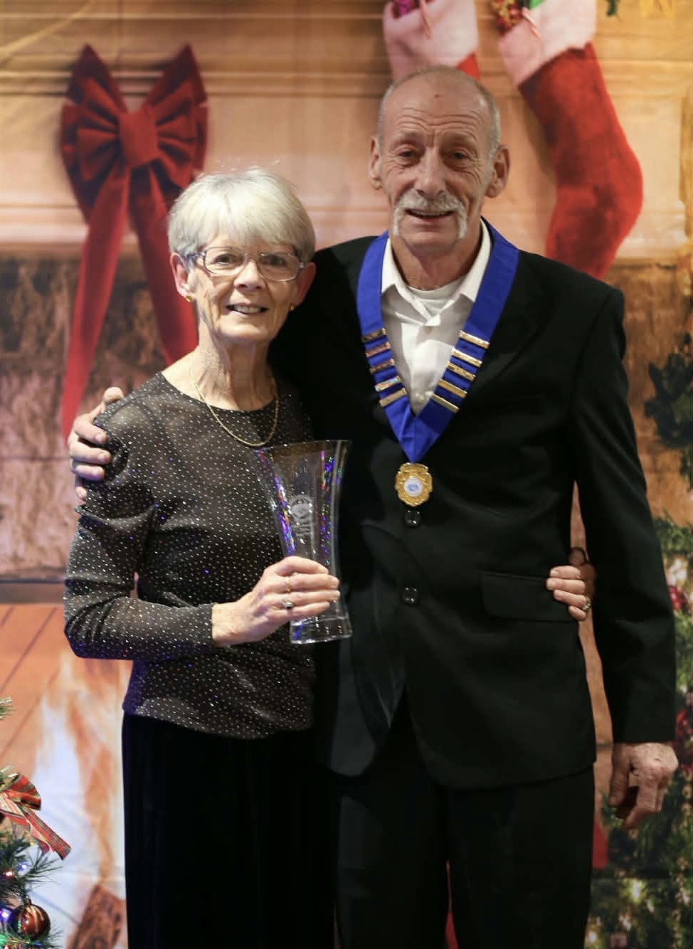 However, before that took place, there was the small matter of awarding a large array of trophies, many of which were beautiful cut glass crystal. Club Chairman, Roger Hayes, who was compere for the night, invited Club President, Roger Hales, up onto the stage to present the prizes.